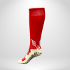 Image of red socks with grey tiles: female model wears size 7 shoes in our Small size